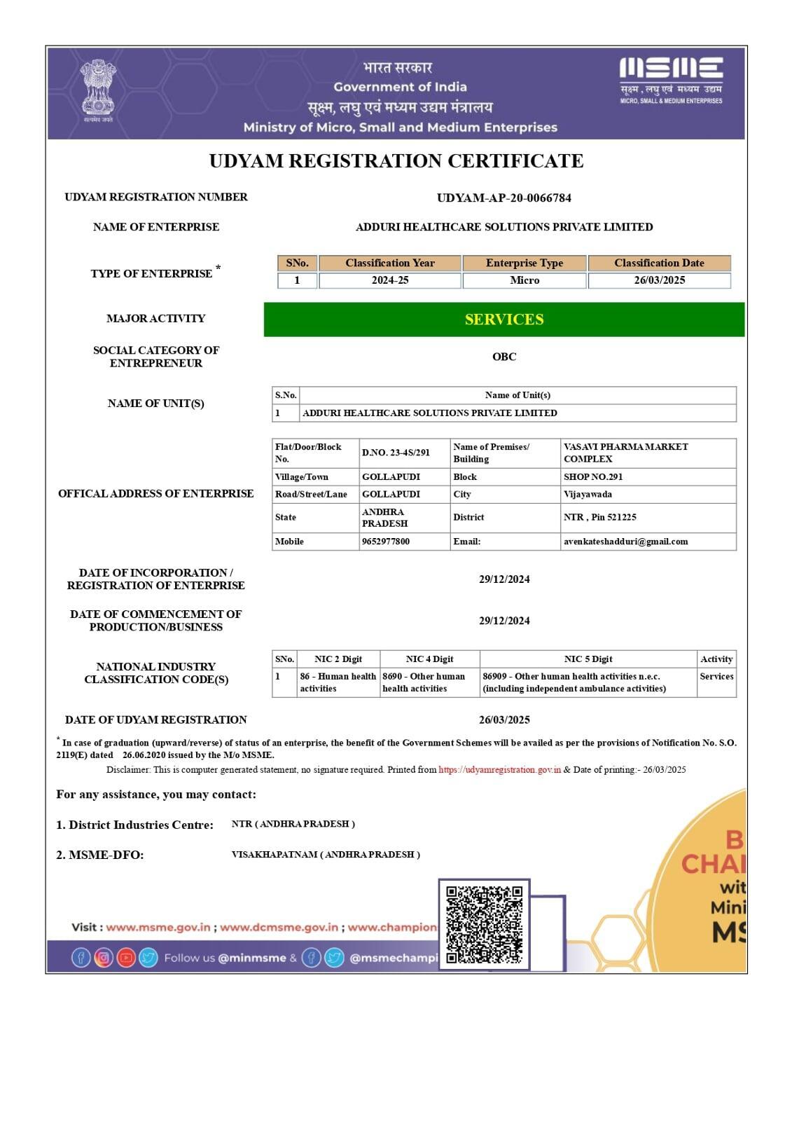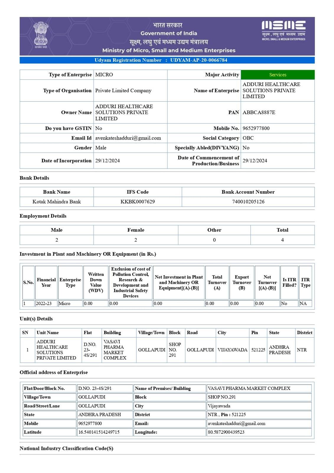 Company Name: Adduri Healthcare Solutions Private Limited